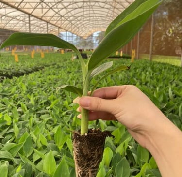 Oferecemos as melhores variedades de mudas de banana, cultivadas com tecnologia de micropropagação para garantir plantas vigorosas, uniformes e livres de doenças.