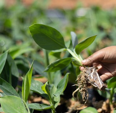 As mudas são produzidas a partir de uma criteriosa seleção a campo em uma área de plantas que tem por objetivo a retirada das mudas a serem clonadas (Jardim Clonal), tendo em vista proporcionar aos nossos clientes plantas saudáveis, produtivas e com grande potencial genético.